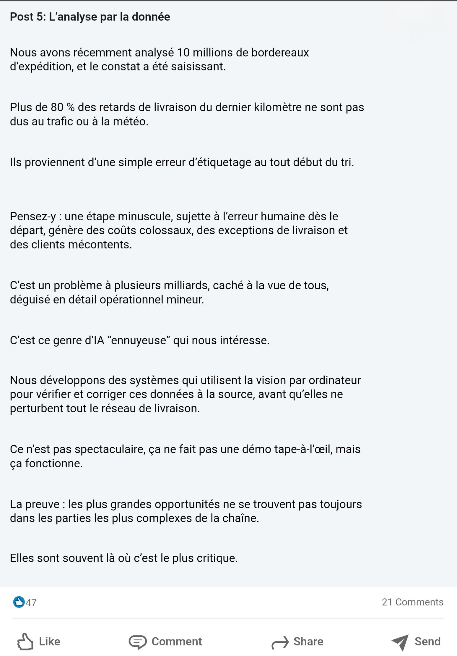 Impact: Positionne le CEO en leader d’opinion et attire des leads premium en quête d’innovation.---Post 5: Analyse par la Donnée
